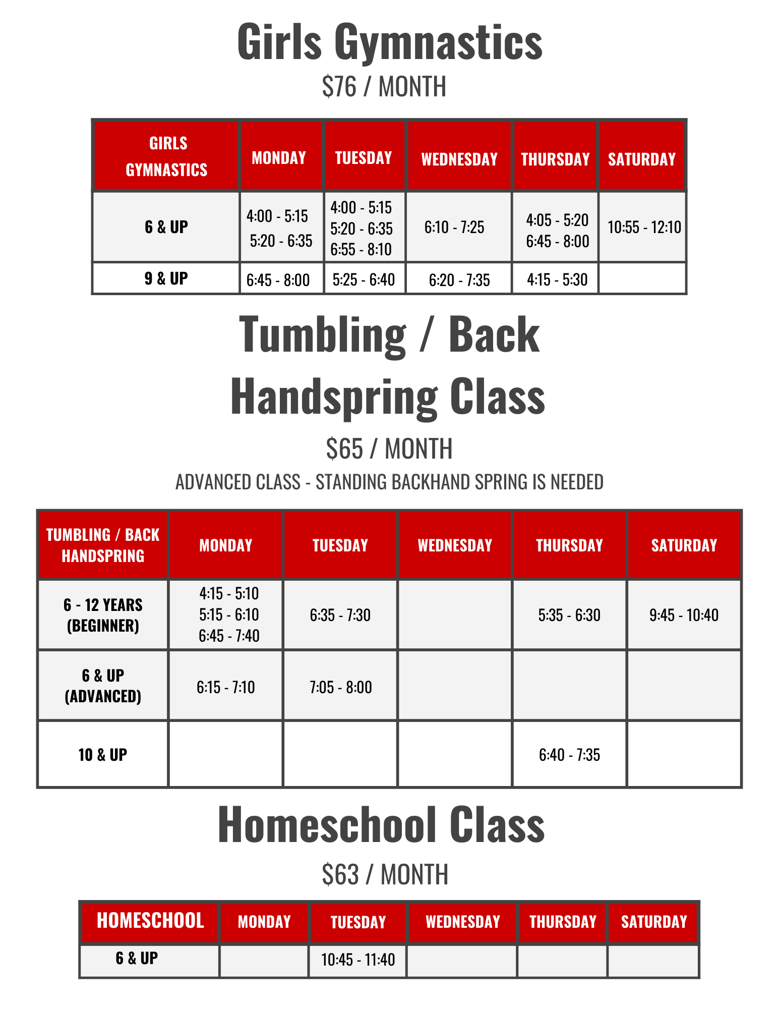 Girls Competitive Gymnastics Team