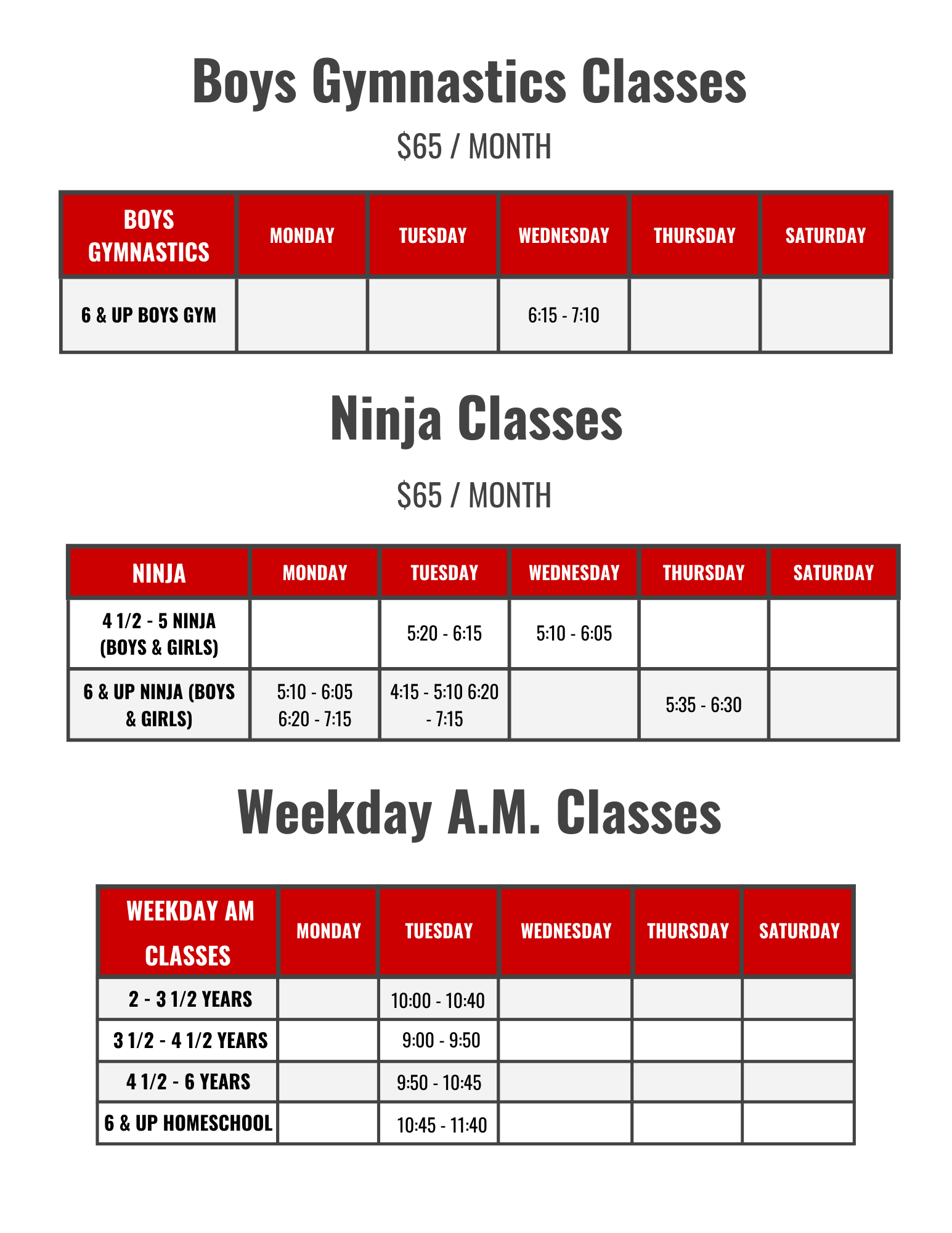 Class Schedules